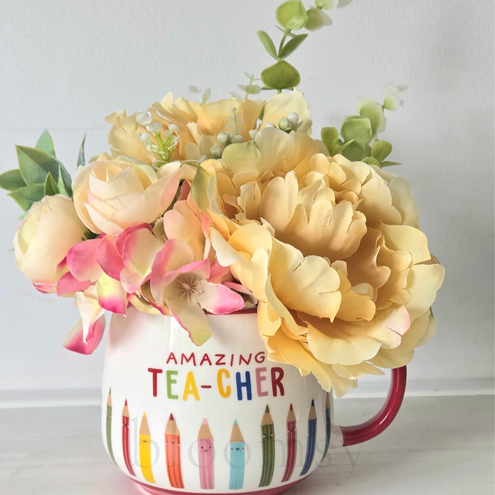 Amazing Teacher gift - Silk flower / mug arrangement