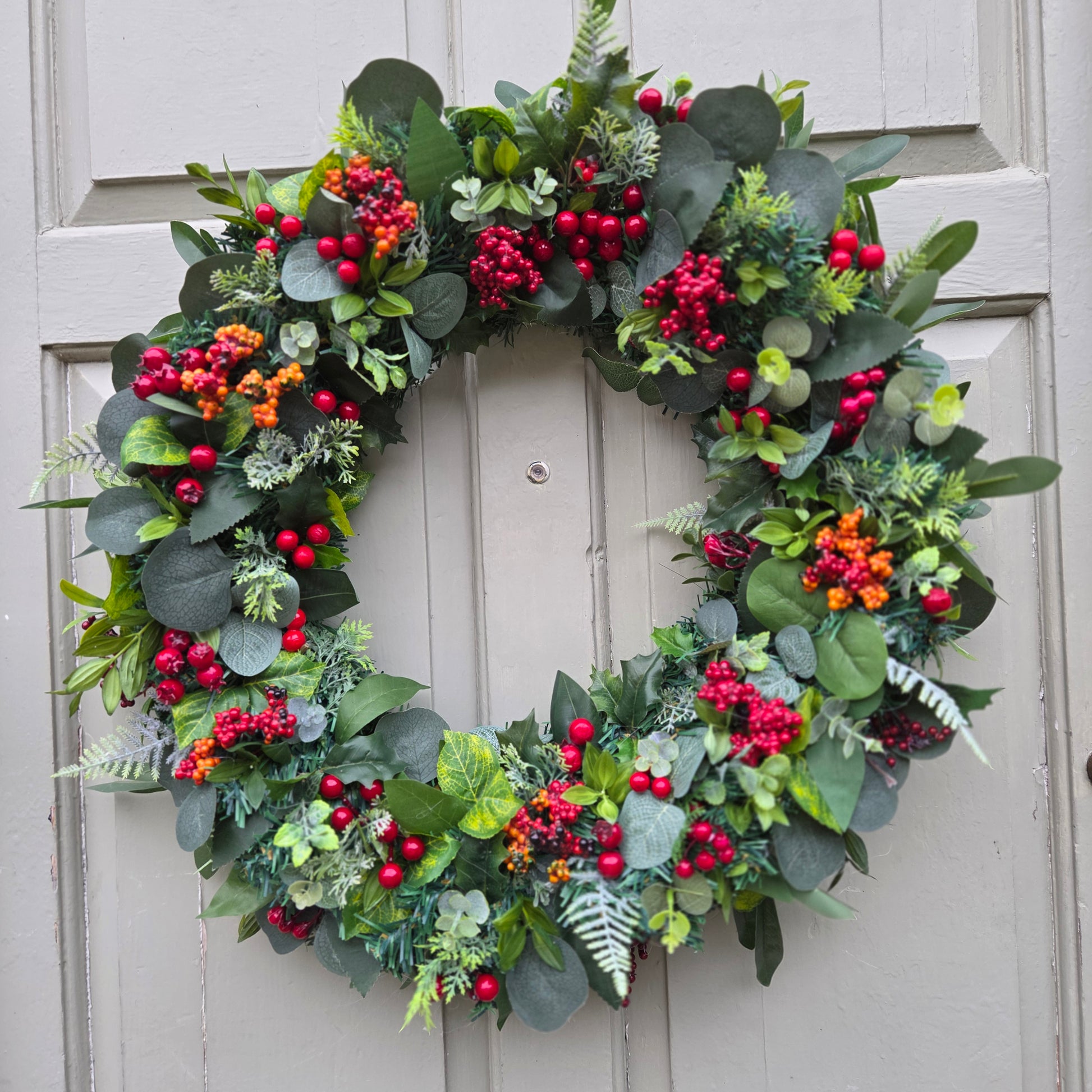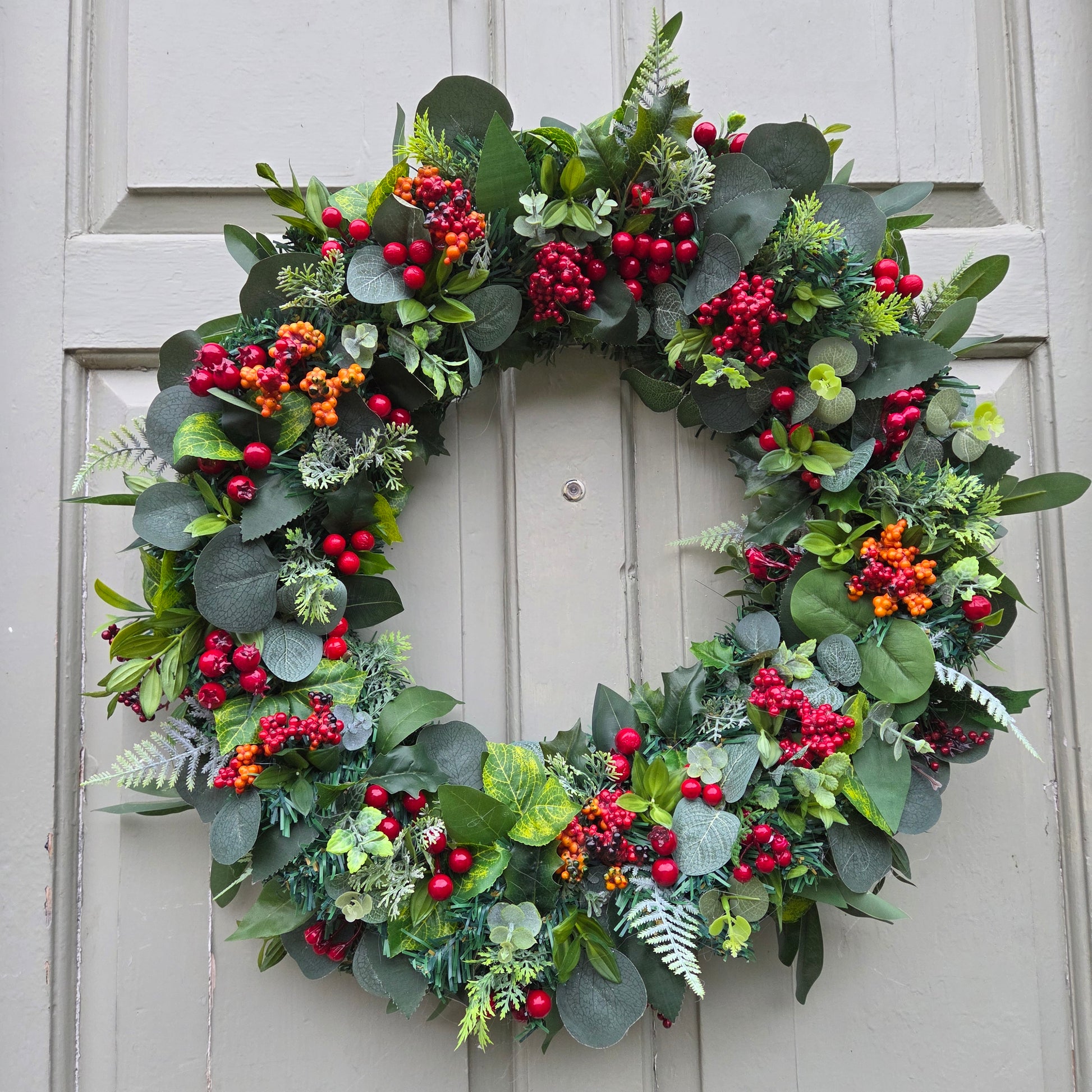 This listing features our large Deluxe Natural Red Berry Christmas Door / Wall Wreath.