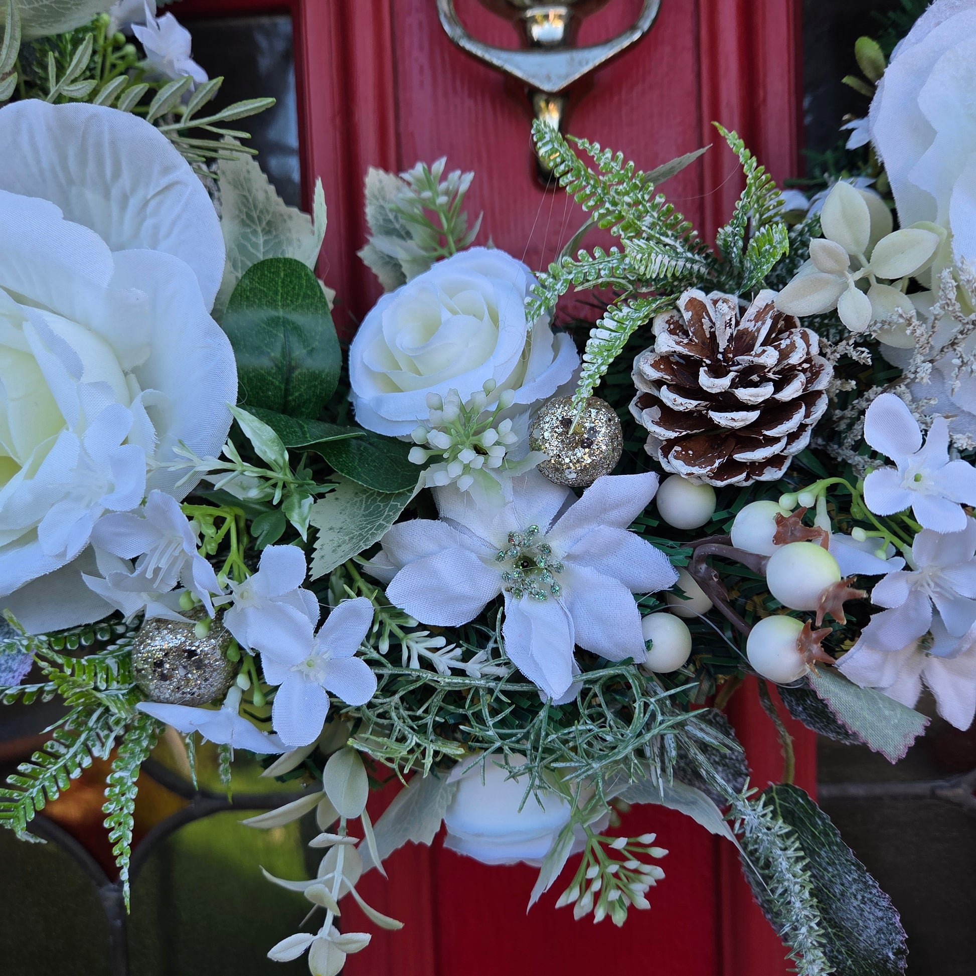 Each wreath we make is made with an abundance of thoughtfully selected artificial foiliage, berries and decorations.