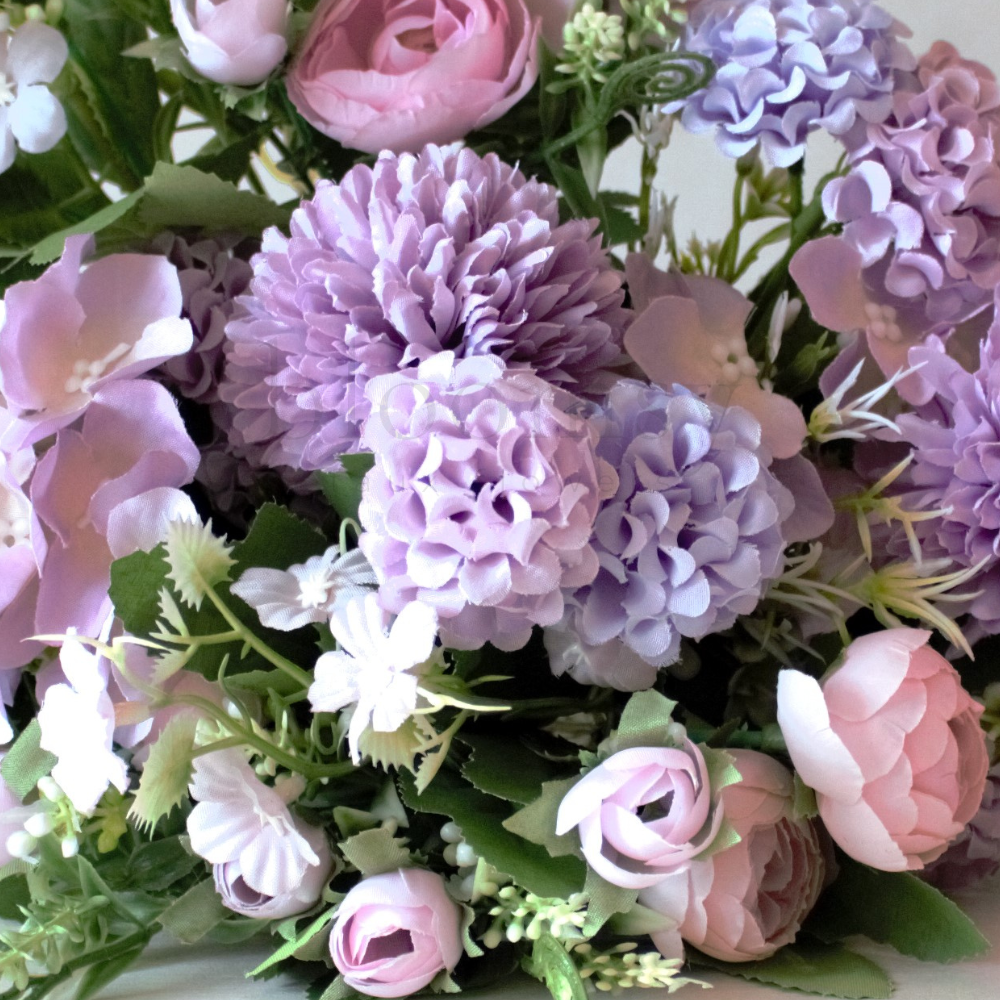The Lilac Bloomsy Box - Mixed bunch of lilac silk flowers with foliage